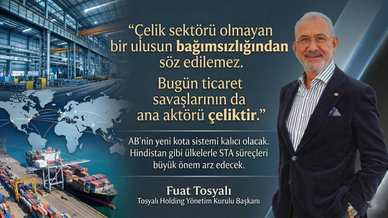 Akdeniz Demir ve Demir Dışı Metaller İhracatçıları Birliği Başkanı ve Tosyalı Holding Yönetim Kurulu Başkanı Fuat Tosyalı, “Ekonominin Ufuk Turu-2026” toplantısında yaptığı sunumda çelik sektörünün stratejik önemine dikkat çekti. Tosyalı, çeliğin sadece ekonomik değil, aynı zamanda ulusal bağımsızlık açısından da kritik bir sektör olduğunu vurguladı.