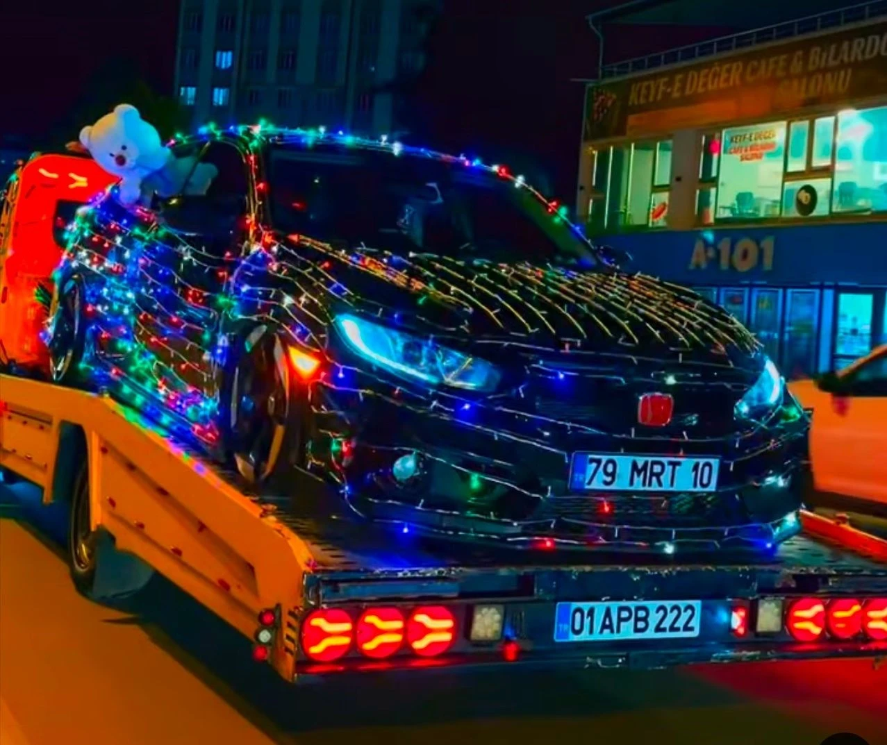 Kilis’te kısa sürede fenomen hâline gelen bu otomobil, hem şehrin sokaklarında hem de dijital ortamda merak ve ilgi odağı oldu. Yetkililer, bu tür gösterilerin trafiği olumsuz etkileyebileceği uyarısında bulunurken, sosyal medyada gündem olan görüntüler, kent sakinleri arasında günün en çok konuşulan konularından biri oldu.