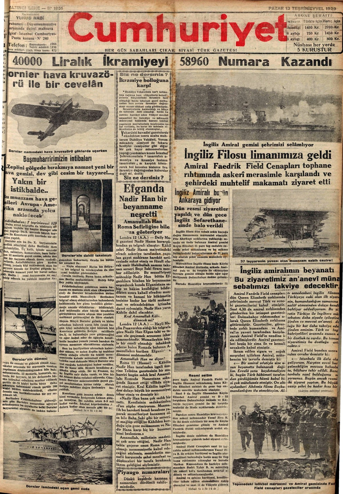 TARİHTE BUGÜN: 96 YIL ÖNCEKİ CUMHURİYET GAZETESİ-13 Ekim 1929