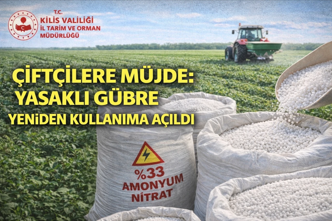 <div class="p1"><span class="s1">Kilis Valiliği ve Kilis İl Tarım ve Orman Müdürlüğü tarafından sosyal medya üzerinden yapılan açıklamada, gübre tedarikine yönelik önemli bir kararın yürürlüğe girdiği duyuruldu.</span></div> <div class="p2"><span>Tarım ve Orman Bakanlığı, bölgedeki gelişmeler ve gübre tedarikinde yaşanan ihtiyaçlar doğrultusunda yeni tedbirleri devreye aldı. Bu kapsamda Bakanlık tarafından 81 ilin valiliğine gönderilen genelge ile 2016 yılından bu yana yasaklı olan %33 amonyum nitrat gübresinin tarımsal amaçlı kullanımına yeniden izin verildiği bildirildi.</span><span class="s1"></span></div> <div class="p2"><span>Yapılan açıklamada, söz konusu gübrenin tarımda verimliliği artırmak amacıyla üreticiler tarafından kullanılabileceği belirtilirken, uygulamanın belirlenen kurallar ve denetimler çerçevesinde gerçekleştirileceği ifade edildi.</span><span class="s1"></span></div> <div class="p2"><span>Yetkililer, çiftçilerin gübre temini ve kullanımına ilişkin detaylı bilgi almak için İl ve İlçe Tarım ve Orman Müdürlükleriyle iletişime geçebileceğini kaydetti.</span><span class="s1"></span></div> <div class="p1"><span class="s1">Haber: İbrahim Güneş </span></div>