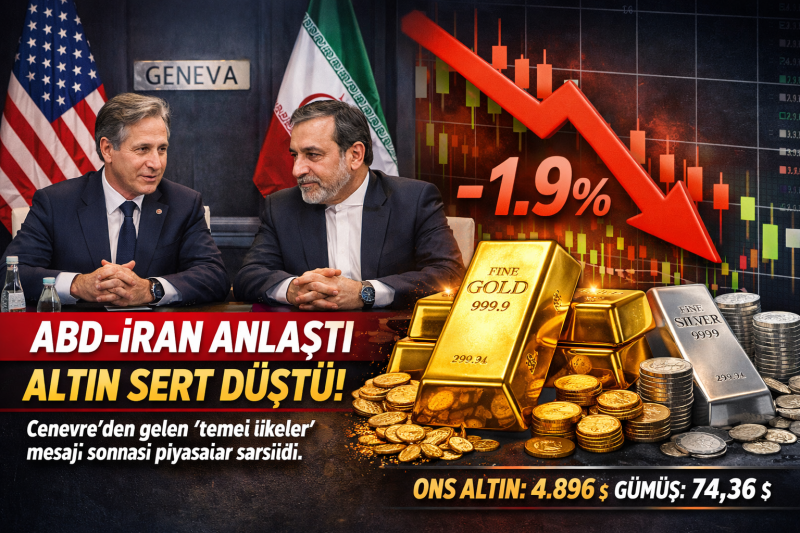 <div data-end="199" data-start="48"><strong data-end="199" data-start="48">Cenevre’de tamamlanan nükleer görüşmeler sonrası “temel ilkeler” mesajı geldi; güvenli liman talebi zayıfladı, ons altın yüzde 2’ye yakın geriledi.</strong></div> <div data-end="199" data-start="48"><strong data-end="199" data-start="48"></strong></div> <div data-end="670" data-start="201">Cenevre’de ABD ile İran arasında yürütülen nükleer müzakerelerin ikinci turu tamamlandı. İran Dışişleri Bakanı Abbas Arakçi, görüşmelerin önceki tura göre “iyi ilerlediğini” söyledi ve tarafların olası bir anlaşma için taslak metinler üzerinde çalışmayı kabul ettiğini açıkladı. Arakçi, iki tarafın da uzlaşması zaman alacak başlıklara sahip olduğunu, ancak “yol gösterici temel ilkeler” üzerinde bir anlayış oluştuğunu ifade etti. <span data-state="closed"></span></div> <div data-end="967" data-start="672">Bu mesajların ardından piyasalarda risk algısı yumuşadı. Reuters’ın aktardığına göre spot ons altın yüzde 1,9 düşüşle 4.896 dolar seviyelerine geriledi. Aynı saatlerde ABD dolar endeksindeki yükseliş de (yaklaşık yüzde 0,5) altın üzerindeki baskıyı artırdı. <span data-state="closed"></span></div> <div data-end="1175" data-start="969">Gümüşteki geri çekilme daha sert oldu. Reuters verilerine göre gümüş ons fiyatı yüzde 2,9 düşüşle 74,36 dolar seviyesine indi. Platin ve paladyumda da kayıplar görüldü. <span data-state="closed"></span></div> <div data-end="1397" data-start="1177">Enerji piyasası da görüşmelerden gelen “ilerleme” açıklamalarını fiyatladı. Reuters, İran cephesinden gelen mesajların ardından Brent petrolün yüzde 1’in üzerinde gerilediğini yazdı. <span data-state="closed"></span></div> <h5 data-end="1440" data-start="1399">Haber: Mehmet REYHANLI<br data-end="1424" data-start="1421"></h5>