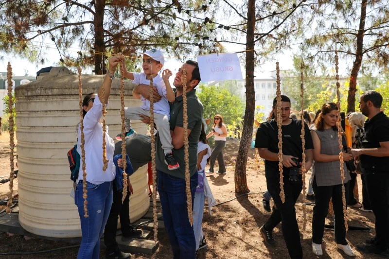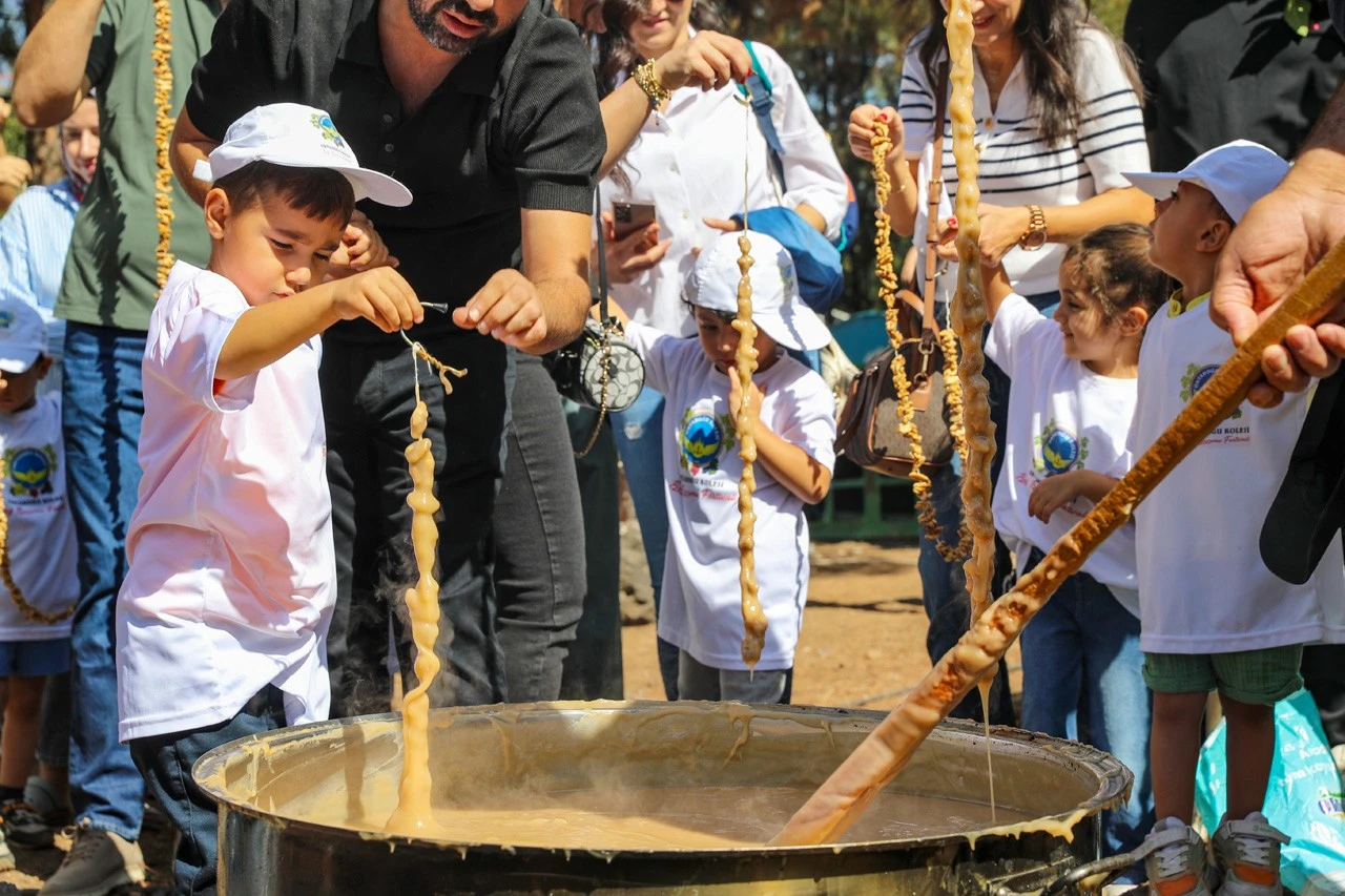 <h4>Merkez Kayapınar ilçesindeki özel bir okulda bağ bozumu geleneğinin yaşatılması ve çocukların doğayla iç içe olması amacıyla etkinlik düzenlendi.</h4> <div></div> <div></div> <div>Etkinlikte, okulun bahçesindeki bağda veli ve öğretmenleriyle üzüm toplayan öğrenciler, daha sonra üzümlerden geleneksel yöntemlerle yapılan pekmez, pestil ve sucuk yapımına katıldı.</div> <div>Anaokulunun rehber öğretmeni Nazlı Adıgüzel, yaptığı açıklamada, 5 yıldır geleneksel olarak bağ bozumu etkinliği yaptıklarını söyledi.</div> <div></div> <div></div> <div></div> <div>Etkinlik ile çocukların doğayla iç içe olmasının yanı sıra kültürel değerleri öğretmeyi amaçladıklarını belirten Adıgüzel, şunları kaydetti:</div> <div>"Çocuklar üzüm toplarken üzümün dalından sofraya gelene kadarki süreci gözlemliyor ve üretimin emekle birleştiğini öğreniyor. Doğanın döngüsünü yerinde görmek onlarda çevre bilinci ve sorumluluk bilincini oluşturuyor. Bağ bozumu, ekip işi. Çocuklar üzüm toplarken hem eğleniyor hem de dayanışmanın gücünü keşfediyor. Velilerimiz de çocukluk anılarını anımsıyor ve kültürel değerlerini çocuklara aktarma fırsatı buluyor."</div> <div></div> <div></div> <div></div> <div>Veli İlknur Mızrak Kıran, oğlunun en mutlu günlerinden birini yaşadığını belirtti.</div> <div>Oğluyla güzel bir etkinliğe katıldığını, çocuğunun arkadaşlarıyla sosyalleştiğini ifade eden Kıran, "Şehir ortamında üzüm bağları bulmakta zorlandığımız için okulda böyle güzel bir etkinlik olması çok güzel. Oğlumun arkadaşlarıyla bağlardan üzüm koparması, topladığı ilk üzümü alıp yiyebilmesi ve gözlerindeki mutluluğu görmek, beni de mutlu etti." ifadelerini kullandı.</div> <div>Ali Ünal ise çocuğuyla birlikte güzel bir gün geçirdiğini dile getirdi.</div> AA ------ <div>60 Yıl Önce Kilis’te Şehit Olan Askerin Ailesi Kilis’e Geliyor</div> <div></div>