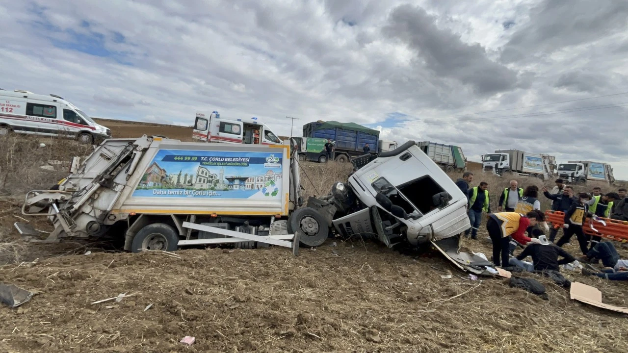 Tekirdağ’ın Çorlu ilçesinde meydana gelen feci kazada belediyeye ait çöp kamyonu kontrolden çıkarak şarampole yuvarlandı. Metrelerce yüksekten düşen araçtaki üç işçi yaralandı.