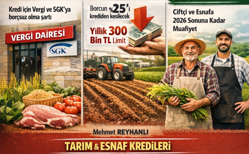 <div data-end="226" data-start="48"><strong data-end="226" data-start="48">Hazine destekli tarım ve esnaf kredilerinde vergi/SGK borcu için “borçsuzluk belgesi” şartı geldi; borcu olana kredi tutarının yüzde 25’inden mahsup, yıllık 300 bin TL sınır.</strong></div> <div data-end="226" data-start="48"><strong data-end="226" data-start="48"></strong></div> <div data-end="600" data-start="228">Hazine destekli tarım ve esnaf kredilerinin kullanım esasları değişti. Resmi Gazete’de yayımlanan düzenlemeyle, Ziraat Bankası, Ziraat Katılım, Halkbank ve Tarım Kredi Kooperatifleri üzerinden kullandırılan Hazine destekli yatırım ve işletme kredilerinde vergi ve sosyal güvenlik prim borçlarına ilişkin yeni koşullar yürürlüğe girdi. <span data-state="closed"></span></div> <h3 data-end="630" data-start="602">Borçsuzluk belgesi şartı</h3> <div data-end="940" data-start="631">Kredi kullanacak faydalanıcıların, en fazla 15 gün önce alınmış belgeyle vergi dairesi ve sosyal güvenlik kurumlarına vadesi geçmiş borcunun bulunmadığını göstermesi gerekecek. Borç varsa, borcun yapılandırılmış olması ve yapılandırmanın bozulmamış olması şartı aranacak. <span data-state="closed"></span></div> <h3 data-end="1009" data-start="942">Borcu olanlar için yüzde 25 mahsup, yıllık 300 bin TL üst sınır</h3> <div data-end="1303" data-start="1010">Şart sağlanmazsa, kullanılacak kredi/finansmanın yüzde 25’ine karşılık gelen tutar, kişinin vadesi geçmiş vergi ve prim borçlarına mahsup edilmek üzere ilgili kurumlara aktarılacak. Bu yöntemle yapılacak tahsilatın yıllık toplamı 300 bin TL’yi aşamayacak. <span data-state="closed"></span></div> <div data-end="1454" data-start="1305">Düzenlemede ayrıca, borcun faizine ilişkin Hazine indiriminin yüzde 25 olarak uygulanacağı bilgisi de yer aldı. <span data-state="closed"></span></div> <h3 data-end="1500" data-start="1456">31 Aralık 2026’ya kadar muafiyet kapsamı</h3> <div data-end="1739" data-start="1501">Temel hayvansal ve bitkisel üretimde “tamamı ayni” olup 400 bin TL’ye kadar kullandırılan desteklerde ve belirli esnaf/sanatkâr meslek gruplarında 31 Aralık 2026’ya kadar borçsuzluk şartı aranmayacak. <span data-state="closed"></span></div> <h5 data-end="1814" data-start="1741">Haber: Mehmet REYHANLI<br data-end="1766" data-start="1763"></h5>