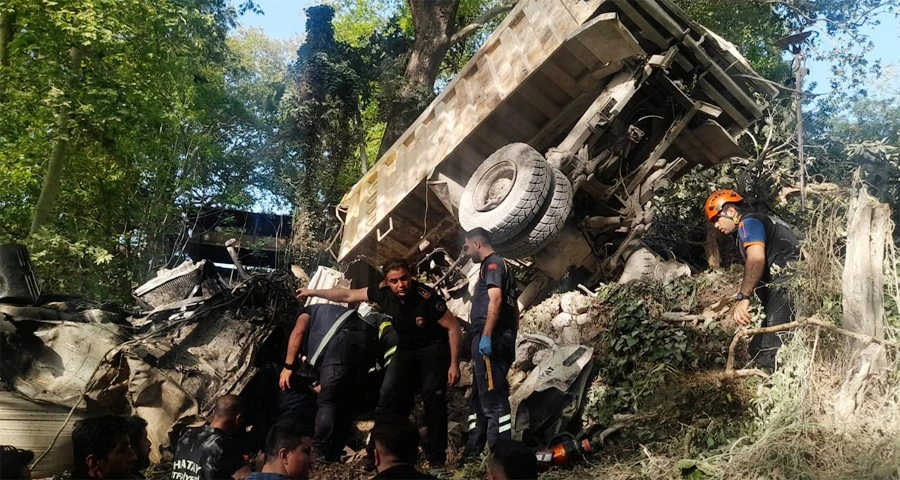 <div>Hatay’ın Defne ilçesinde freni patlayan hafriyat kamyonu, uçurumdan yuvarlanarak güvenlik kulübesinin üzerine düştü. Kazada 1 kişi hayatını kaybetti, 1 kişi ağır yaralandı.</div> <div>Kaza, Defne ilçesi Harbiye şelalesi mevkiinde meydana geldi. H.Y. idaresindeki 28 K 5889 plakalı hafriyat kamyonu freni patlayınca yol kenarındaki seramik yapılan iş yerine çarptı. Ardından kamyon uçurumdan yuvarlanarak bölgede bulunan güvenlik kulübesini biçti.</div> <div>Kazada sürücü ile kulübede bulunan 51 yaşındaki güvenlik görevlisi Mehmet Çakrak ağır yaralandı. Yaralı sürücü ve Çakrak olay yerindeki müdahalenin ardından hastaneye sevk edildi. Güvenlik görevlisi Çakrak hastanede yapılan tüm müdahalelere rağmen hayatını kaybederken, sürücünün durumunun ağır olduğu öğrenildi.</div> <div>Polis ekipleri kazayla ilgili inceleme başlattı.</div> <div></div> <div><strong>"Kamyon yarım metre yakın geçmesi halinde 3 veya 4 personelim aracın altında kalacaktı"</strong></div> <div>Kamyonun kaza yaptığı sırada personellerin çalıştığını ifade eden Ayhan Karasu, "Ağır tonajlı bir aracın freni patladığında duramayıp seramik iş yerimizde düşüp aşağıya doğru yuvarlandı. Kazada 1 kişinin öldüğünü duyduk. Kaza esnasında personellerim sevkiyat için çalıştığı sırada yarım metre uzaklıktan geçerek aşağıya gitti. Kamyon yarım metre yakın geçseydi, benim 3 veya 4 personelim aracın altında kalacaktı. Seramikler kırıldı ama personellerimize bir şey olmaması bizim tek tesellimiz oldu" ifadelerini kullandı.</div> <div></div> İHA