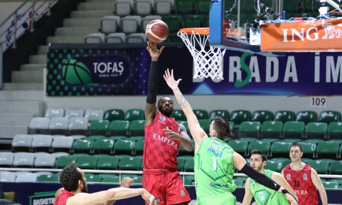 ING Basketbol Süper Ligde Play-Off yolunda önemli maçlar kazanan Empera Halı Gaziantep Basketbol takımı, Tofaş ile deplasmanda oynadığı maçta 84-72 yenik ayrıldı. Tofaş Spor Salonu’nda oynanan müsabakanın ilk periyodunu 27-21 yenik tamamlayan kırmızı-Siyahlılar soyunma odasına 49-36 geride kapatarak gitti. Empera Halı Gaziantep Basketbol farkı kapatmak için çıktığı ikinci yarıda üçüncü çeyreği de 62-50 geride tamamladı. Son periyotta çabalar fayda sağlamayınca Empera Halı Gaziantep Basketbol takımı karşılaşmadan 84-72 yenik ayrıldı. Salon: Tofaş Hakemler: Aytuğ Ekti, Zafer Yılmaz, Kaan Büyükçil Tofaş: Zubcic 13, Berkan Durmaz 7, Berk Uğurlu 14, Simmons 10, Phillip 9, Purcell 11, Christon 8, Alihan Demir 4, Muhsin Yaşar 8 Empera Halı Gaziantep Basketbol: Kelly 15, Jaiteh 15, Hayes 13, Tomas 7, Can Uğur Öğüt 9, Alp Karahan 3, İsmail Cem Ulusoy 4, Orhan Aydın Hacıyeva 2, Muhammed Doğan Şenli 4 Periyot: 27-21 Devre: 49-36 Periyot: 62-50 Maç sonucu: 84-72