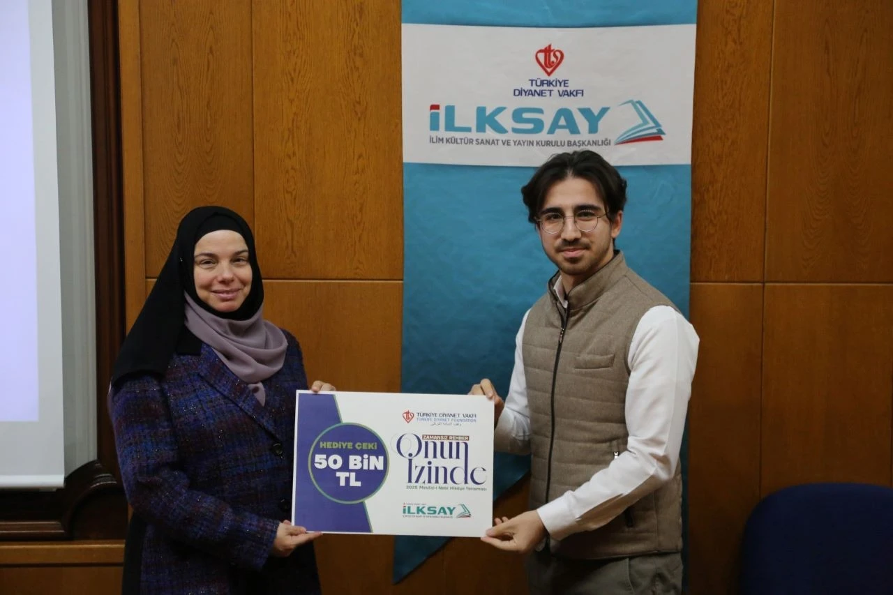 <h3>Türkiye Diyanet Vakfı İlim Kültür Sanat ve Yayın Kurulu Başkanlığı (İLKSAY) tarafından, 2025 Mevlid-i Nebî etkinlikleri kapsamında düzenlenen “Zamansız Rehber: Onun İzinde” temalı hikâye yarışmasında ödüller sahiplerini buldu.</h3> <div></div> <div>TDV İLKSAY Konferans Salonu’nda gerçekleştirilen yarışmanın ödül töreninde konuşan Din İşleri Yüksek Kurulu Üyesi ve TDV İLKSAY Kurulu Başkanı Prof. Dr. Huriye Martı, Hazreti Peygamber’i (sas) anlamanın ve anlatmanın herkesin ortak sorumluluğu olduğunu vurguladı. Prof. Dr. Huriye Martı, “Peygamber Efendimizi anlamak ve anlatmak hepimizin vazifesidir. Aleyhisselatü vesselam Efendimizin izinden gitmek, onun yürüdüğü yolda yürümek ve onu model almak nasıl vazifemizse, onu model olarak göstermek ve sunmak da aynı şekilde vazifemizdir.” dedi. Peygamber Efendimizin hayatını ve mesajını insanlara ulaştırmanın farklı yolları olduğuna dikkati çeken Prof. Dr. Huriye Martı, her bireyin kendi imkanları ve yetenekleri ölçüsünde bu davetin bir parçası olabileceğini ifade etti. Prof. Dr. Huriye Martı, kaleme alınan eserlerin gelecek nesiller açısından taşıdığı değere işaret ederek şunları söyledi: “Bu yarışmaya 75 farklı hikayeyle katılarak ‘Peygamberimi ben de anlatmak istiyorum’ diyen herkese teşekkür ediyorum. Bu çok kıymetli bir katkı. Bu hikayelerin elden ele dolaşarak çocukların elinde okunacağını ve gelecek nesillere Peygamberimizi anlatacağını düşündükçe büyük bir gurur duyuyorum.” TDV Genel Müdür Yardımcısı Fatih Kayacan da programda yaptığı konuşmada, İLKSAY’ın Türkiye Diyanet Vakfı’nın güzide kuruluşlarından biri olduğunu belirtti. Kayacan, İLKSAY’ın ilmi ve edebi eserlerin yanı sıra yabancı dillerde hazırlanan nitelikli çalışmaların titiz bir süreçle yayımlanarak toplumla buluşturulmasına önemli katkılar sunduğunu ifade etti.</div> <div></div> <div>Mevlid-i Nebî Hikâye Yarışması’nın düzenlenmesinde emeği geçenlere teşekkür eden Kayacan, programa katkı sağlayan ve dereceye giren yazarlara da tebriklerini iletti. Konuşmaların ardından hikaye yarışmasında dereceye girenlere ödülleri takdim edildi. Yarışmanın seçici kurulunda yer alan Naime Erkovan, M. Fatih Kutlubay, Sema Bayar, Veysel Altuntaş ve Fatma Haral Efe’nin değerlendirmeleri doğrultusunda yarışmada birincilik ödülüne “Sırlı Gecenin Şifresi” adlı eseriyle Yunus Emre Kandemir layık görüldü. İkincilik ödülü “Rehberim Peygamberim” isimli hikayesiyle Sevde Süeda Gürlesin’e, üçüncülük ödülü ise “Kalp Eşiği” adlı eseriyle Gülsüm Durna’ya verildi. Yarışmada ayrıca, Sultan Canıgür’ün “Azat”, Sümeyra Duvarcıoğlu’nun “Bir Günahsızın Dilinden”, Muhammed Caner Avcılar’ın “Muhammed Kim” ve İbrahim Şaşma’nın “Kum ve Tebessüm” adlı eserleri mansiyon ödülüne layık görüldü. Dereceye giren eser sahiplerine; birincilik için 50 bin TL, ikincilik için 35 bin TL, üçüncülük için 20 bin TL, mansiyon ödülü sahiplerine de kitap seti hediye edildi. Ödül törenine Din İşleri Yüksek Kurulu Üyesi ve TDV İLKSAY Kurulu Başkanı Prof. Dr. Huriye Martı, TDV kurucularından Ahmet Uzunoğlu, TDV Genel Müdür Yardımcısı Fatih Kayacan, TDV eski denetim kurulu üyesi Ahmet Belada, TDV yöneticileri, Mevlid-i Nebi Hikaye Yarışması seçici kurul üyeleri, yazarlar ve çok sayıda davetli katıldı. Ödül takdimi ve hatıra fotoğrafının ardından program sona erdi.</div> <h5>Haber: Abdurrahman Reyhanlı</h5>
