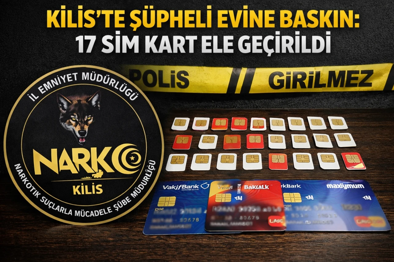 <div><span>Kilis’te Narkotik Suçlarla Mücadele Şube Müdürlüğü ekiplerince yürütülen çalışmalar kapsamında E.Y. isimli şahsın ikametinde arama gerçekleştirildi.</span></div> <div><span>Yapılan aramada 17 adet SIM kart ile 3 adet bankamatik kartı ele geçirildi. Ele geçirilen materyallere incelenmek üzere el konulurken, olayla ilgili adli sürecin başlatıldığı öğrenildi.</span><span></span></div> <div><span>Yetkililer, özellikle çok sayıda SIM kart ve banka kartı kullanımının dolandırıcılık ve bilişim suçları kapsamında değerlendirilebildiğine dikkat çekerek, vatandaşların şüpheli durumları güvenlik birimlerine bildirmeleri gerektiğini belirtti. Haber: İbrahim Güneş </span><span></span></div> <div><span> </span></div>