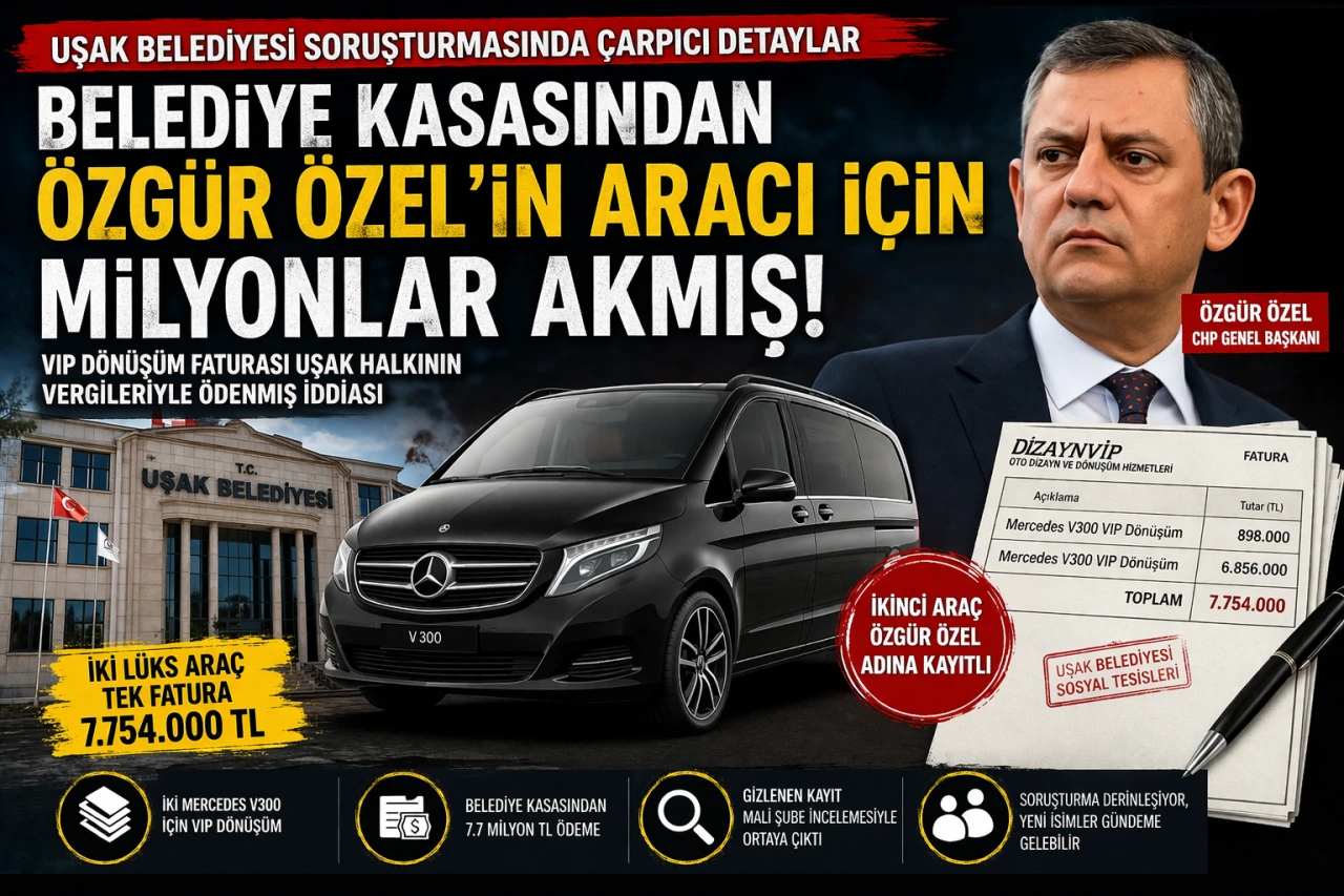 <h3 data-end="521" data-start="79">Uşak Belediyesi’ne yönelik yürütülen soruşturmada ortaya atılan yeni iddia, dosyanın siyasi boyutunu daha da büyüttü.</h3> <div data-end="521" data-start="79">Soruşturma dosyasına yansıyan bilgilere göre, iki lüks araç için düzenlenen toplam 7 milyon 754 bin liralık VIP dönüşüm faturasında araçlardan birinin CHP Genel Başkanı Özgür Özel adına kayıtlı olduğu öne sürüldü. Aynı iddia bugün farklı yayın organlarında benzer ayrıntılarla yer aldı. <span data-state="closed"></span></div> <div data-end="981" data-start="523">İddiaya göre DizaynVIP tarafından iki ayrı Mercedes V300 araç için önce 898 bin lira ve 6 milyon 856 bin lira tutarında iki farklı fatura düzenlendi. Daha sonra bu iki kalemin tek faturada birleştirilerek Uşak Belediyesi Sosyal Tesisleri adına işlendiği ileri sürüldü. Soruşturma evrakına dayandırılan haberlerde, araçlardan birinin belediyeye, diğerinin ise Özgür Özel adına kayıtlı olduğunun tespit edildiği savunuldu. <span data-state="closed"></span></div> <h3 data-end="1034" data-start="983" data-section-id="bdk8ga">Gizli kayıt iddiası dosyanın seyrini değiştirdi</h3> <div data-end="1535" data-start="1036">Haberlere yansıyan bilgilere göre inceleme sırasında ikinci araca ait kayıtların ilk aşamada sistemde görünmediği, Mali Suçlarla Mücadele ekiplerinin devreye girmesiyle bu kaydın açıldığı iddia edildi. Bu tespitin ardından, VIP dönüşüm masrafının belediye kasasından karşılandığı yönündeki iddianın soruşturma dosyasına girdiği öne sürüldü. Ancak bu aşamada söz konusu bilgilerin yargı süreci tamamlanmadan kesinleşmiş hüküm niteliği taşımadığı da not edilmeli. <span data-state="closed"></span></div> <h3 data-end="1580" data-start="1537" data-section-id="7johnd">Siyasi tartışma büyüdü, yalanlama geldi</h3> <div data-end="2035" data-start="1582">Dosyaya yansıyan bu iddialar sonrası siyasi tartışma da sertleşti. Bazı yayın organları, Uşak Belediye Başkanı Özkan Yalım hakkındaki diğer iddialarla birlikte bu gelişmenin CHP içinde yeni bir gerilim başlığı oluşturduğunu yazdı. Buna karşılık CHP cephesinden daha önce yapılan açıklamalarda, Özgür Özel’in makam aracına ilişkin iddialar reddedildi ve aracın ödemesinin genel merkez tarafından yapıldığı savunuldu. <span data-state="closed"></span></div> <h3 data-end="2067" data-start="2037" data-section-id="1bt4690">Kamuoyu net cevap bekliyor</h3> <div data-end="2603" data-start="2069">Ortadaki tablo şu soruyu büyütüyor: Belediyenin kasasından çıkan para gerçekten kimin aracına, hangi gerekçeyle harcandı? Bu sorunun cevabını artık siyasi polemik değil, soruşturma dosyasındaki resmi kayıtlar ve yargı süreci verecek. Ancak dosyaya giren iddiaların ağırlığı bile tek başına kamu kaynaklarının kullanımına ilişkin tartışmayı yeniden alevlendirmiş durumda. Uşak dosyasında bundan sonraki her adım, yalnızca belediyeyi değil, Ankara siyasetini de doğrudan etkileyecek gibi görünüyor. <span data-state="closed"></span></div> <h5 data-end="2671" data-start="2605"><strong data-end="2631" data-start="2605">Haber: Mehmet REYHANLI</strong><br data-end="2634" data-start="2631"></h5>