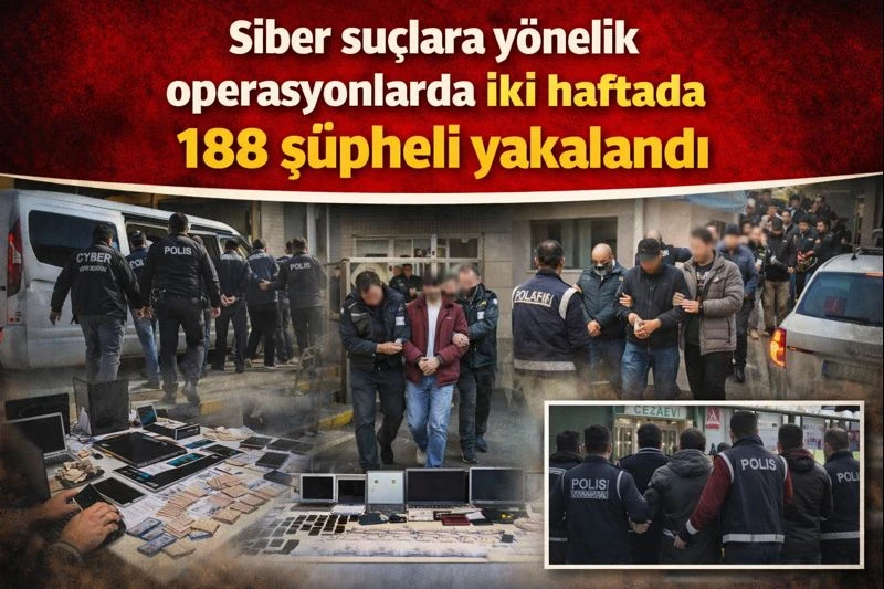 <h3> İçişleri Bakanı Ali Yerlikaya, siber suçlarla mücadele kapsamında 17 ilde iki haftada düzenlenen operasyonlarda yakalanan 118 şüpheliden 68'inin tutuklandığını bildirdi.</h3> Bakan Yerlikaya, sosyal medya hesabından, 17 il merkezli "siber dolandırıcılık" suçuna yönelik jandarma tarafından son iki haftada düzenlenen operasyonlara ilişkin bilgi verdi.2020-2026 döneminde banka hesaplarında 2 milyar 183 milyon lira işlem hacmi bulunan 118 şüphelinin yakaladığını bildiren Yerlikaya, şüphelilerden 68'inin tutuklandığını, 45'i hakkında adli kontrol hükümleri uygulandığını belirtti. Şüphelilerce işlenen "siber dolandırıcılık" suçundan vatandaşların maddi ve manevi zarar görmesini engellediklerini aktaran Yerlikaya, şunları kaydetti:"Cumhuriyet başsavcılıklarımız ile Jandarma Genel Komutanlığı Siber Suçlarla Mücadele Daire Başkanlığı ve MASAK koordinesinde il jandarma komutanlıklarımızca; Adana, Ankara, Antalya, Batman, Bursa, Düzce, Erzurum, Isparta, Kars, Kahramanmaraş, Kayseri, Kocaeli, Mersin, Muğla, Niğde, Şanlıurfa ve Trabzon merkezli gerçekleştirilen operasyonlarda yakalanan şüphelilerin, yasa dışı bahis oynattıkları ve suçtan elde edilen paranın nakline aracılık ettikleri, ele geçirdikleri kişisel veriler ile vatandaşlarımızı dolandırdıkları, mağdur vatandaşlarımızın banka hesaplarından bilgileri dışında para çekerek haksız kazanç sağladıkları, kendilerini kamu görevlisi olarak tanıtarak irtibata geçtikleri vatandaşlarımızı dolandırdıkları, sosyal medya hesapları üzerinden 'yatırım danışmanlığı, ürün satışı, satılık ev ilanı, sosyal yardım başvurusu' gibi sahte ilanlarla dolandırıcılık yaptıkları tespit edildi."Çok sayıda dijital materyal ve muhtelif miktarda doküman ele geçirildiğini ifade eden Bakan Yerlikaya, operasyonlarda emeği geçenleri tebrik etti. Kaynak: aa