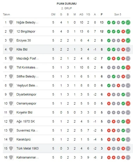 <h4>Ligde 8 puanla 4. sırada yer alan Yeşil-Siyahlılar, 5 maçta 2 galibiyet, 2 beraberlik ve 1 mağlubiyet aldı.</h4> <div>Lider Niğde Belediyesi Spor'un ise 13 puanı bulunuyor.</div> Kilis FK, ligde önümüzdeki hafta kendi sahasında oynayacağı maç için hazırlıklarına başladı. Temsilcimiz, önümüzdeki hafta 11 Ekim Cumartesi günü 12 Bingölspor ile karşılaşacak. <h4>CEZASI BİTTİ</h4> Bu arada Kilis FK'nın 1 maçlık seyircisiz oynama cezası sona erdi. Kilis FK, maçı taraftarının önünde oynayacak. <div><strong>Haber: İbrahim GÜNEŞ</strong></div> <div><strong>-----</strong></div> <div>Kilis Kent Haber’den BİK Müdürüne Anlamlı Ziyaret</div> <div></div>