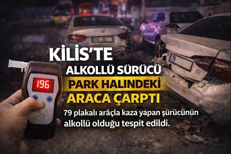 <h3 data-end="129" data-start="57"><strong data-end="129" data-start="57">79 plakalı araçla kaza yapan sürücünün alkollü olduğu tespit edildi.</strong></h3> <div data-end="271" data-start="131">Kilis’te alkollü araç kullanımı nedeniyle maddi hasarlı trafik kazası meydana geldi. Olay, 19 Ocak 2026 günü saat 23.20 sıralarında yaşandı.</div> <div data-end="493" data-start="273">Edinilen bilgilere göre 1992 doğumlu K.Y. isimli şahıs, kullandığı 79 plakalı araç ile seyir halindeyken park halinde bulunan 42 plakalı araca çarptı. Çarpmanın etkisiyle her iki araçta da maddi hasar oluştu.</div> <div data-end="722" data-start="495">Olay yerine gelen polis ekipleri tarafından yapılan kontrolde, araç sürücüsünün alkollü olduğu tespit edildi. Şüpheli hakkında “mala zarar verme” ve “trafik güvenliğini tehlikeye sokma” suçlarından işlem başlatıldı.</div> <div data-end="756" data-start="724">Kazayla ilgili inceleme sürüyor.</div> <h5 data-end="782" data-start="758">Haber: Mehmet REYHANLI</h5> <h5 data-end="821" data-start="784"></h5>