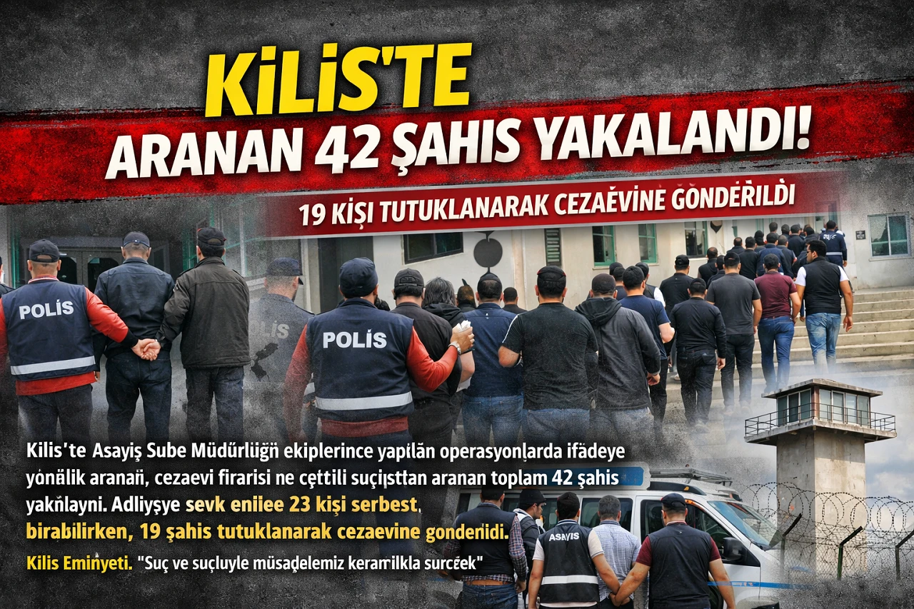 <h3>Kamusal düzenin korunması, aranan şahısların yakalanması ve asayiş suçlarının önlenmesi amacıyla gerçekleştirilen çalışmalar sonucunda, çeşitli suçlardan aranan toplam 42 şahıs yakalandı.</h3> <div>Yakalanan şahıslar arasında, 23 kişi ifadeye çağrılmak üzere gözaltına alınırken, 14 kişi hapis cezasına ilişkin arama kapsamında bulundu. Ayrıca operasyonlarda; Kasten Yaralama, Görevi Yaptırmamak İçin Direnme, Motosiklet Hırsızlığı ve Genel Güvenliğin Kasten Tehlikeye Sokulması gibi suçlardan sorumlu olan şahıslar da dahil edildi.</div> <div>Adli mercilere sevk edilen şahıslardan 23’ü ifadelerinin ardından serbest bırakılırken, 19 kişi tutuklanarak cezaevine teslim edildi. Operasyonların, il genelinde suç ve suçlularla mücadelede kararlılıkla devam edeceği bildirildi.</div> <div>Kilis Emniyet Müdürlüğü yetkilileri, vatandaşların güvenliği ve kamu düzeninin korunması için yürütülen çalışmaların aralıksız sürdüğünü vurguladı. Yetkililer, vatandaşları şüpheli durumlarda polisle iş birliği yapmaya çağırarak, “Suç ve suçlularla mücadelemiz aynı azim ve kararlılıkla devam edecektir” açıklamasında bulundu.</div> <div>Haber: İbrahim Güneş</div> <div> Kilis’te Korkutan Yangın: Facianın Eşiğinden Dönüldü</div> <div> </div> <div> </div>