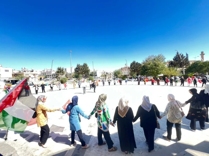 <h3>AK Parti Kadın Kolları tarafından, Gazze’de yaşanan insanlık dramına dikkat çekmek amacıyla Kilis’te “Gazze için Sessiz Çığlık” etkinliği düzenlendi. Recep Tayyip Erdoğan Meydanı’nda bir araya gelen kadınlar, Gazze halkının sesi olabilmek için el ele verdi.</h3> <div></div> <div>Etkinlikte konuşan AK Parti Kilis İl Kadın Kolları Başkanı Melike Hilal Üstündağ, kadınlar olarak Gazze'nin sessiz çığlığına ses vermek istediklerini belirtti. Üstündağ, konuşmasında Gazze’ye insani yardım götürmek üzere yola çıkan Küresel Sumud Filosu'na yapılan saldırıya değinerek, “Barışçıl bir şekilde yola çıkan ve uluslararası sularda haydut İsrail’in hukuksuz müdahalesine uğrayan filoyu dünya sadece seyretti. Hamdolsun, Türkiye Cumhurbaşkanımız Sayın Recep Tayyip Erdoğan’ın kararlılığıyla bu adaletsizlik karşısında sessiz kalmadı” dedi.</div> <div></div> <div>Türkiye'nin sadece kendi vatandaşlarını değil, 13 ülkeden 101 gönüllüyü de sağ salim ülkelerine ulaştırdığını hatırlatan Üstündağ, “Bizler de bu kahramanların ülkemize dönüşlerinde yanlarında olduk” ifadelerini kullandı.</div> <div>Katılımcıların ellerinde taşıdığı pankartlar ve etkinlik boyunca kurulan “sessiz çığlık zinciri” ile Gazze’de yaşananlara dikkat çekildi. Üstündağ, etkinlikte yaptığı çağrıda, “NEHİRDEN DENİZE ÖZGÜR FİLİSTİN” sloganını da yineleyerek, tüm dünyaya şu mesajı verdiklerini söyledi:</div> <div></div> <div>“Bugün burada tüm kimliklerimizden sıyrılarak sadece kadın kimliğimizle yer alıyoruz. Çünkü bu mesele ne unvanlarla, ne sahip olduklarımızla ilgilidir. Bu bir insanlık meselesidir. Barış kadınla mümkündür. Slogan atmıyoruz, vicdanlarımızla haykırıyoruz. Çünkü bazı sessizlikler vardır ki, arşı yere indirir. Bizim sessizliğimiz, Gazze’nin en gür çığlığı olacaktır.”</div> <div></div> <div>Etkinlik, meydandaki kadınların oluşturduğu sessiz çığlık zinciriyle sona erdi.</div> <div>Haber: İbrahim Güneş</div> <div> Kilis’te Cezaevinde Mahkûm Sayısı 4 Bine Yaklaştı!</div>