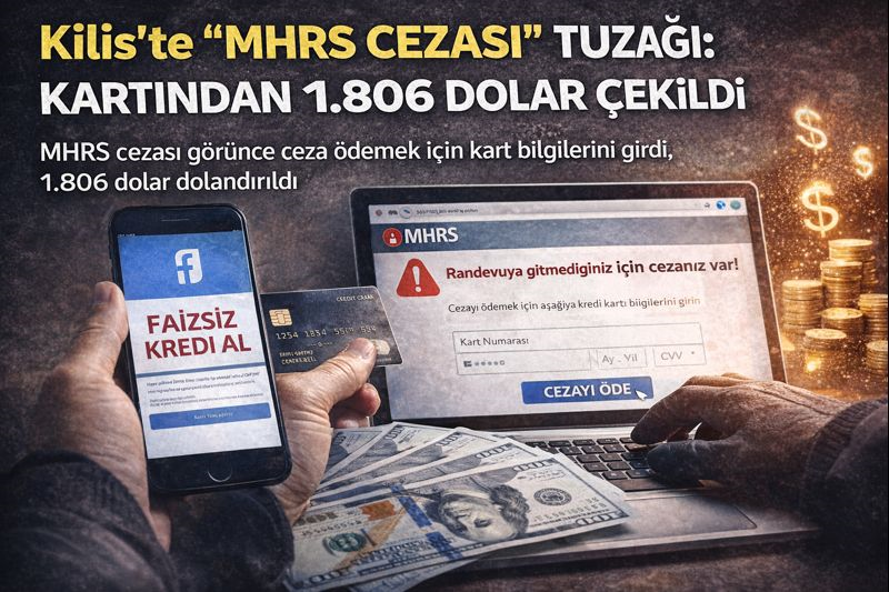 <h2 data-end="240" data-start="177">Kilis’te “MHRS cezası” tuzağı: Kartından 1.806 dolar çekildi</h2> <h3 data-end="503" data-start="242">Merkezi Hekim Randevu Sistemi (MHRS) üzerinden randevu almak isterken sahte siteye giren vatandaş, “randevuya gitmediğiniz için ceza var” uyarısıyla kart bilgilerini girdi. Kredi kartından 1.806 dolar harcama yapıldığını fark eden mağdur, emniyete başvurdu.</h3> <div></div> <div data-end="720" data-start="505">Kilis’te 1994 doğumlu S.T., URL adresini hatırlamadığı bir internet sitesi üzerinden Merkezi Hekim Randevu Sistemi (MHRS) randevusu almak için işlem yaptığı sırada dolandırıldığını belirterek müracaatta bulundu.</div> <div data-end="1055" data-start="722">Edinilen bilgiye göre S.T., işlem sırasında ekranda randevuya gitmediği gerekçesiyle para cezası bulunduğuna dair bir uyarı gördü. Cezayı ödemek amacıyla eşine ait kredi kartı bilgilerini ilgili alana giren S.T., daha sonra kart hareketlerini kontrol ettiğinde hesabından toplam 1.806 dolar tutarında harcama yapıldığını öğrendi.</div> <div data-end="1237" data-start="1057">Dolandırıldığını anlayan S.T., durumu emniyet birimlerine bildirerek şikayetçi oldu. Olayla ilgili banka veya kredi kartlarının kötüye kullanılması kapsamında işlem başlatıldı.</div> <div data-end="1480" data-start="1239">Emniyet yetkilileri, MHRS adı kullanılarak açılan sahte internet sitelerine karşı vatandaşları uyararak, randevu ve ödeme işlemlerinin yalnızca resmî MHRS uygulaması ve resmî internet adresleri üzerinden yapılması gerektiğini hatırlattı.</div> <h5 data-end="1530" data-start="1466">Haber: Abdurrahman REYHANLI<br data-end="1496" data-start="1493"></h5>