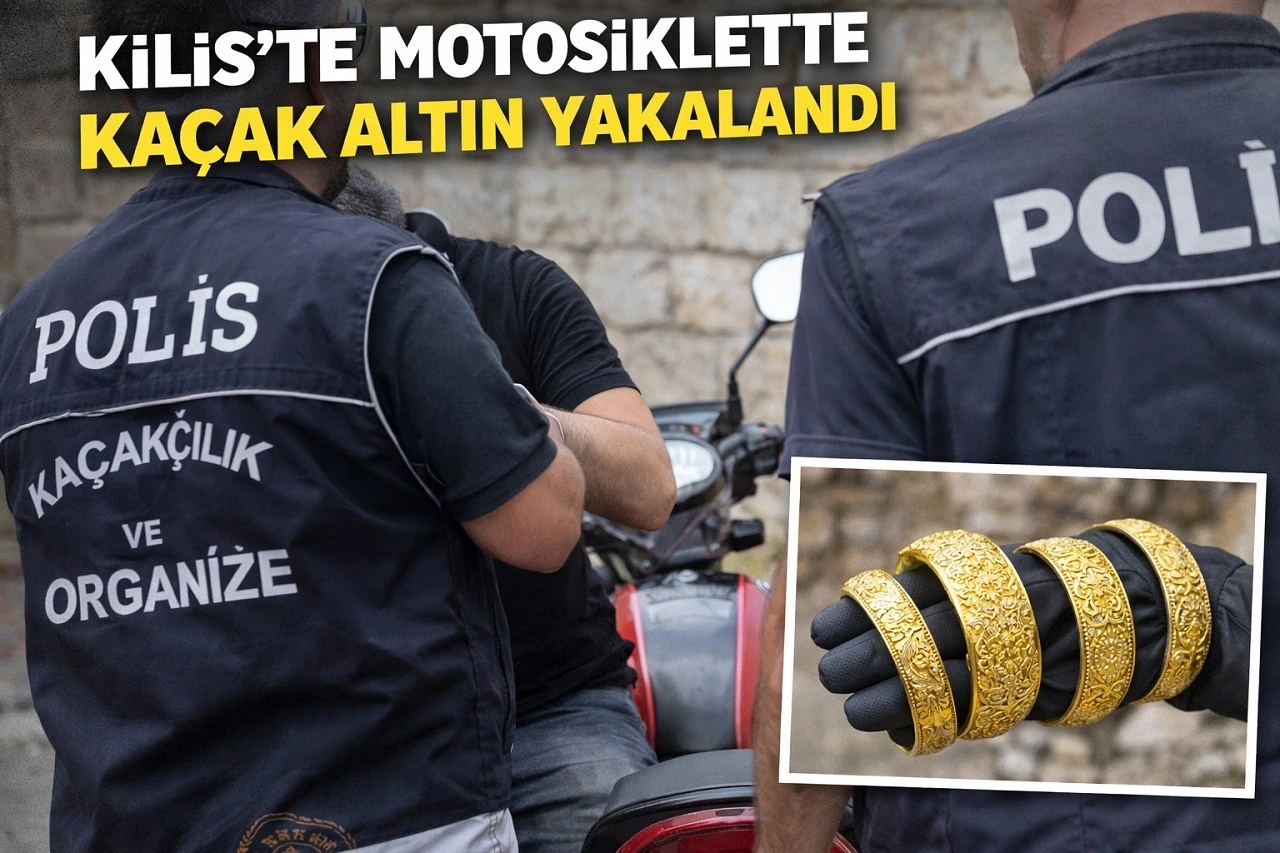 <h3>Edinilen bilgilere göre, İl Emniyet Müdürlüğüne bağlı Kaçakçılık ve Organize Suçlarla Mücadele Şube Müdürlüğü ekipleri, kaçakçılıkla mücadele kapsamında yürüttükleri çalışmalar sırasında Ebulüle Mahallesi’nde şüpheli bir motosikleti durdurdu.</h3> <div>Motosiklette bulunan F.H. isimli şahıs üzerinde yapılan üst aramasında 3 adet gümrük kaçağı altın bilezik ele geçirildi.</div> <div>Ele geçirilen altın bileziklere polis ekipleri tarafından el konulurken, şüpheli şahıs hakkında kaçakçılıkla mücadele kanunu kapsamında yasal işlem başlatıldığı öğrenildi.</div> <div>Kilis İl Emniyet Müdürlüğü ekiplerinin, kent genelinde kaçakçılık faaliyetlerinin önlenmesine yönelik denetim ve çalışmalarını aralıksız sürdürdüğü bildirildi. Olayla ilgili soruşturma devam ediyor.</div> <div>Haber: İbrahim Güneş</div> <div>Kilis’te Bayram Hareketliliği Terzilerin Yüzünü Güldürdü </div> <div> </div> <div> </div>