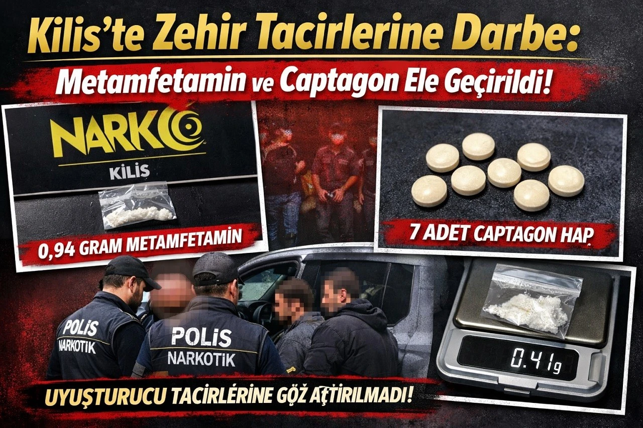 <h3>Kilis’te Narkotik Suçlarla Mücadele Şube Müdürlüğü ekipleri tarafından gerçekleştirilen denetim ve operasyonlarda, farklı noktalarda durdurulan şüpheliler üzerinde uyuşturucu maddeler ele geçirildi.</h3> <div>Ekiplerce şüpheli hareketleri üzerine durdurulan H.K. isimli şahsın yapılan üst aramasında, 0,94 gram metamfetamin olduğu değerlendirilen uyuşturucu madde bulundu.</div> <div>Ayrıca, durumundan şüphelenilerek durdurulan ve M.A. isimli şahsın kullandığı araçta bulunan yolcular M.S.E. ve A.E. isimli şahıslarla birlikte yapılan aramada, 7 adet captagon hap ele geçirildi.</div> <div>Bir diğer olayda ise polis ekiplerince durdurulan H.M., A.E., M.N.A. ve İ.E.Ö. isimli şahısların üzerinde yapılan aramada, daralı ağırlığı 0,41 gram olan ve metamfetamin olduğu değerlendirilen uyuşturucu madde bulundu.</div> <div>Gerçekleştirilen operasyonlar sonucunda yakalanan şüpheliler hakkında, Türk Ceza Kanunu’nun 188 (Uyuşturucu veya uyarıcı madde imal ve ticareti) ve 191 (Kullanmak için uyuşturucu madde satın almak, kabul etmek veya bulundurmak) maddeleri kapsamında ayrı ayrı dosyalar halinde işlem başlatıldığı öğrenildi.</div> <div>Haber: İbrahim Güneş</div> <div> CHP Kilis İl Başkanı Sapan’dan Sert Açıklama: “Durmayacağız, Susmayacağız”</div> <div> </div>