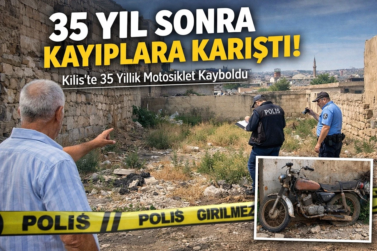 <h3>Edinilen bilgilere göre S.Ç. isimli vatandaş, yaklaşık 35 yıl önce babasının ikametinin yanında bulunan bir arsaya park ettiği motosikletini yerinde bulamadığını belirterek polis ekiplerine müracaat etti.</h3> <div>Uzun yıllar boyunca arsada bulunduğunu düşündüğü motosikletini kontrol etmek isteyen S.Ç., aradan geçen yılların ardından motosikletin bulunduğu yerde olmadığını fark etti.</div> <div>Durum üzerine emniyet birimlerine başvuran S.Ç., motosikletinin kaybolduğunu belirterek yardım talebinde bulundu. Yapılan başvuru sonrası polis ekipleri olayla ilgili kayıt oluştururken, motosikletin akıbetinin belirlenmesi için inceleme başlatıldığı öğrenildi.</div> <div>Yetkililer, olayın tüm yönleriyle araştırıldığını ve motosikletin gerçekten çalınıp çalınmadığı ya da farklı bir nedenle ortadan kaybolup kaybolmadığının tespit edilmesi için gerekli çalışmaların sürdüğünü ifade etti.</div> <div>Demirciler Mahallesi’nde yaşanan bu ilginç başvuru, “35 yıl sonra fark edilen kayıp” olarak kentte merak konusu oldu. Olayla ilgili soruşturma devam ediyor.</div> <div>Haber: İbrahim Güneş</div> <div> Kilis’te Bayram Hareketliliği Terzilerin Yüzünü Güldürdü</div> <div> </div>