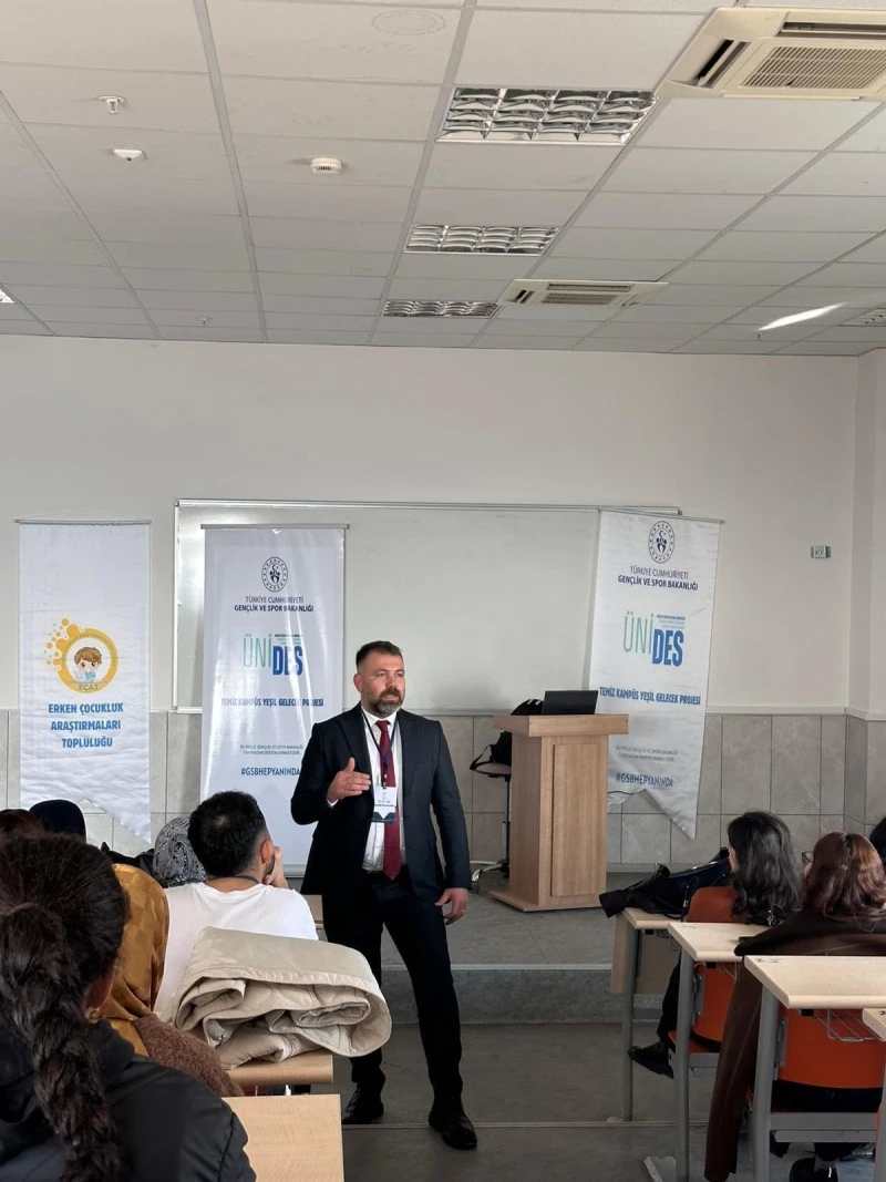 <div class="p1"><span class="s1">SHMYO 201 No’lu Sınıf’ta düzenlenen eğitimde, öğrencilerin ÜNİDES sistemi hakkında kapsamlı şekilde bilgilendirilmesi ve başvuru süreçlerini doğru, eksiksiz ve etkin biçimde yürütebilmelerine katkı sağlanması amaçlandı. Eğitimi, Öğretim Görevlisi Mehmet Karaoğlan verdi.</span></div> <div class="p2"><span class="s1"></span></div> <div class="p1"><span class="s1">Program kapsamında ÜNİDES sisteminin genel işleyişi, başvuru aşamaları, değerlendirme kriterleri ve süreç içerisinde dikkat edilmesi gereken hususlar detaylı şekilde ele alındı. Ayrıca uygulama sürecinde karşılaşılabilecek olası hatalar ve bu hatalara yönelik çözüm önerileri üzerinde duruldu.</span></div> <div class="p2"><span>Eğitimin sonunda gerçekleştirilen soru-cevap bölümünde öğrenciler, merak ettikleri konulara ilişkin sorularını yönelterek doğrudan bilgi alma fırsatı buldu. Programın, öğrencilerin proje ve başvuru süreçlerinde daha bilinçli ve donanımlı hareket etmelerine katkı sunması bekleniyor.</span><span class="s1"></span></div> <div class="p2"><span>Haber: İbrahim Güneş </span></div>