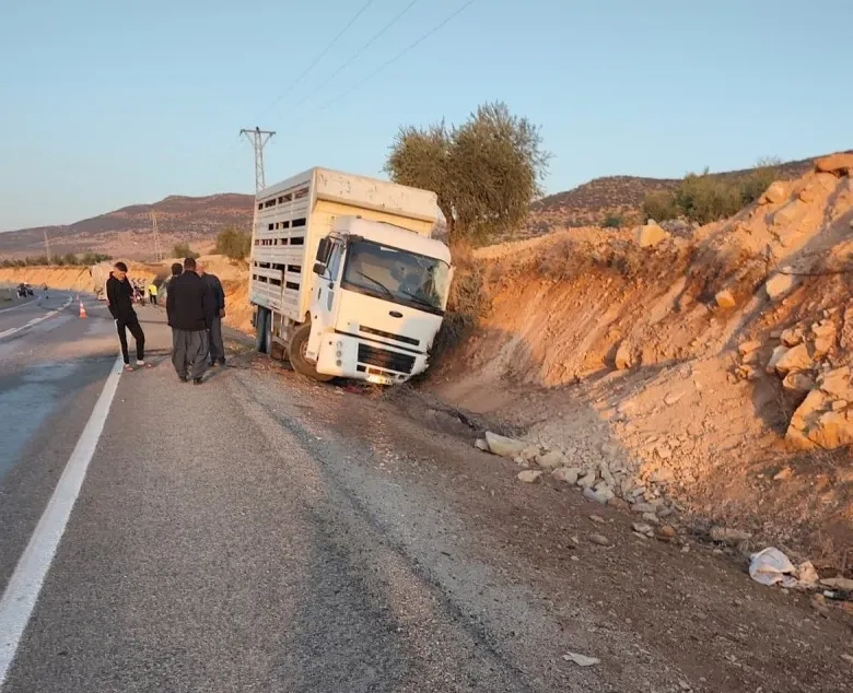 <h3>Kilis’te direksiyon başında uyuyan sürücünün kontrolünden çıkan hayvan yüklü kamyonet, iki tıra çarparak zincirleme kazaya neden oldu.</h3> <div></div> <div>Sabah saatlerinde meydana gelen kazada ortalık adeta savaş alanına dönerken, kamyonet sürücüsü yaralandı.</div> <div><strong>Kaza, sabah saatlerinde Kilis-Hatay karayolunun </strong><strong>20</strong><strong>. kilometresinde meydana geldi.</strong>İddiaya göre, içerisinde küçükbaş hayvan yüklü kamyonet, Hatay istikametine seyir halindeyken sürücüsü direksiyon başında uyudu. Kontrolden çıkan kamyonet önce karşı yönden gelen bir tırla yan yan sürtüştü, ardından aynı istikamette ilerleyen başka bir tıra çarptı.</div> <div></div> <div>Çarpmanın etkisiyle kamyonet yol ortasında savrulurken, araçta Kazanın ardından karayolu kısa süreliğine trafiğe kapandı.</div> <div><strong>Yaralı sürücü hastaneye kaldırıldı</strong>Kazada kamyonetin sürücüsü yaralandı. İhbar üzerine olay yerine sağlık, jandarma ve itfaiye ekipleri sevk edildi. İlk müdahalesi olay yerinde yapılan sürücü, ambulansla Kilis Devlet Hastanesi’ne kaldırıldı. Yaralının sağlık durumunun iyi olduğu öğrenildi.</div> <div></div> <div>Kazayla ilgili inceleme başlatılırken, uyku nedeniyle direksiyon hakimiyetini kaybeden sürücünün ifadesinin alınacağı öğrenildi.</div> <div>Haber: İbrahim Güneş</div> <div> Elbeyli’de Vatandaş İsyan Etti: “Çocuğumuz Ölürse Sorumlusu Kim Olacak?”</div>