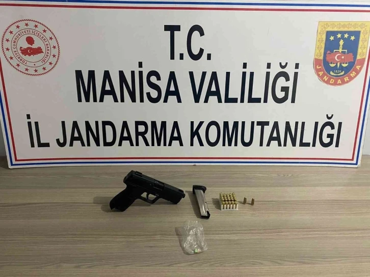 Manisa’nın Yunusemre ilçesinde jandarma ekipleri tarafından durdurulan bir otomobilde tabanca ve uyuşturucu ele geçirildi. Edinilen bilgiye göre, Yunusemre İlçe Jandarma Komutanlığı ekipleri, Güzelbahçe Mahallesi’nde durumundan şüphelendikleri 45 ACC 603 plakalı otomobili kontrol noktasında durdurdu. Otomobilde bulunan C.Ç., B.C. ve Y.U.’ya GBT sorgusu yapan ekipler, otomobil ve şahısların üzerini de aradı. Yapılan aramada B.C.’nin belinde 1 ruhsatsız tabanca, 27 mermi ile 2 adet Extasy hap ele geçirildi. Olayla ilgili soruşturma başlatıldı.