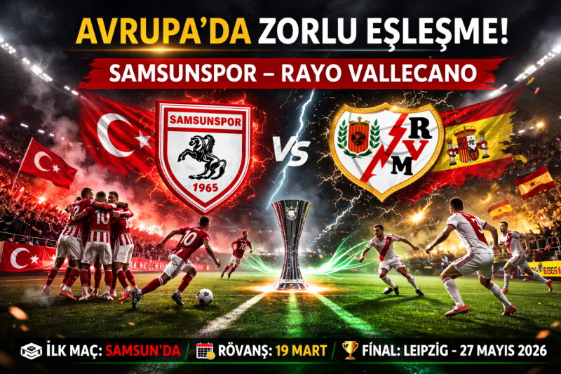 <h3 data-end="160" data-start="28"><strong data-end="160" data-start="28">UEFA Konferans Ligi son 16 turunda Samsunspor, İspanyol temsilcisi Rayo Vallecano ile karşılaşacak. İlk maç Samsun’da oynanacak.</strong></h3> <div><strong data-end="160" data-start="28"></strong></div> <div data-end="470" data-start="162">Avrupa’nın kulüpler düzeyindeki üç numaralı organizasyonu UEFA Konferans Ligi’nde son 16 turu kura çekimi, İsviçre’nin Nyon kentindeki UEFA Genel Merkezi’nde gerçekleştirildi. Kura çekimini eski Portekizli kaleci Rui Patrício yaptı.</div> <div data-end="701" data-start="472">Temsilcimiz Samsunspor, son 16 turunda İspanya La Liga ekiplerinden Rayo Vallecano ile eşleşti. Kırmızı-beyazlı ekip ilk karşılaşmayı sahasında, rövanşı ise deplasmanda oynayacak.</div> <div data-end="786" data-start="703">Son 16 turunda ilk maçlar 12 Mart’ta, rövanş mücadeleleri ise 19 Mart’ta yapılacak.</div> <div data-end="963" data-start="788">Samsunspor’un turu geçmesi halinde çeyrek finalde Celje ile AEK Atina eşleşmesinin galibiyle karşı karşıya gelecek.</div> <div data-end="1107" data-start="965">Organizasyonda 2025-2026 sezonunun finali, 27 Mayıs 2026’da Almanya’nın Leipzig kentindeki Red Bull Arena’da oynanacak.</div> <h5 data-end="1133" data-start="1109">Haber: Mehmet REYHANLI</h5> <div data-is-only-node="" data-is-last-node="" data-end="1179" data-start="1135"></div>