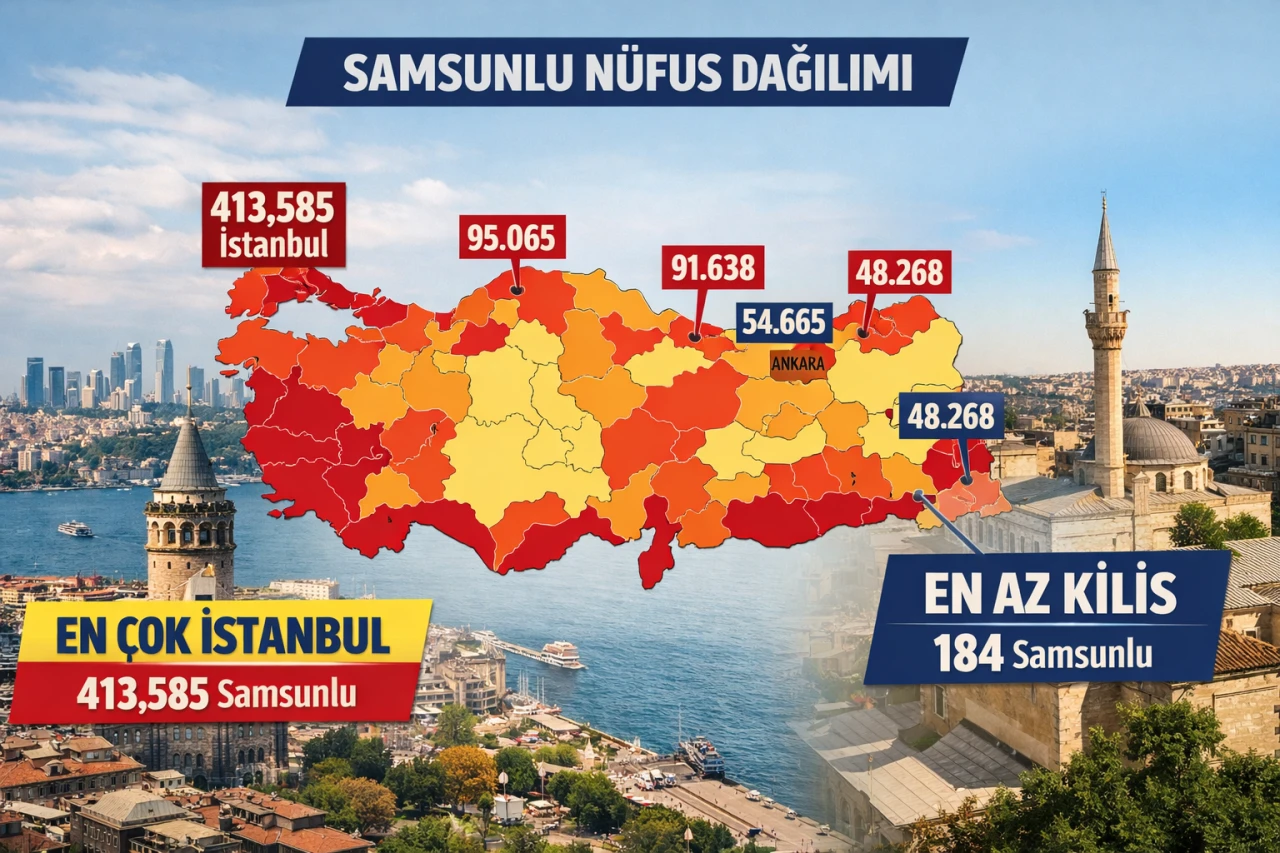 <div class="p1"><span class="s1">Açıklanan verilere göre, 1 milyon 392 bin 403 kişinin ikamet ettiği Samsun’da yaşayan Samsunlu sayısı 1 milyon 79 bin 619 olarak kaydedildi. Samsun nüfusuna kayıtlı 952 bin 535 kişi ise başka illerde yaşamını sürdürüyor.</span></div> <div class="p1"><span class="s1">En Çok İstanbul, En Az Kilis</span></div> <div class="p1"><span class="s1">Samsunluların memleketleri dışında en çok yaşadığı il 413 bin 585 kişi ile İstanbul oldu. İstanbul’u 95 bin 65 kişi ile Bursa, 91 bin 638 kişi ile Ankara, 54 bin 865 kişi ile Tekirdağ ve 48 bin 268 kişi ile Kocaeli takip etti.</span></div> <div class="p1"><span class="s1">Öte yandan, Samsunluların kendi illeri dışında nüfusa oranla en yoğun bulunduğu şehir Tekirdağ oldu. 1 milyon 198 bin 69 nüfuslu Tekirdağ’da 54 bin 865 Samsunlu vatandaşın yaşadığı belirtildi.</span></div> <div class="p1"><span class="s1">Verilere göre Samsunluların en az yaşadığı il ise 184 kişi ile Kilis olarak kayıtlara geçti. Kilis’i 334 Samsunlu ile Karaman, 343 Samsunlu ile Osmaniye, 361 Samsunlu ile Ardahan ve 398 Samsunlu ile Adıyaman izledi.</span></div> <div class="p1"><span class="s1">TÜİK verileri, Samsun nüfusuna kayıtlı vatandaşların büyük bölümünün metropol kentlerde yaşamayı tercih ettiğini ortaya koyarken, Kilis ise Samsunluların en az bulunduğu il olarak dikkat çekti. Haber: İbrahim Güneş </span></div>
