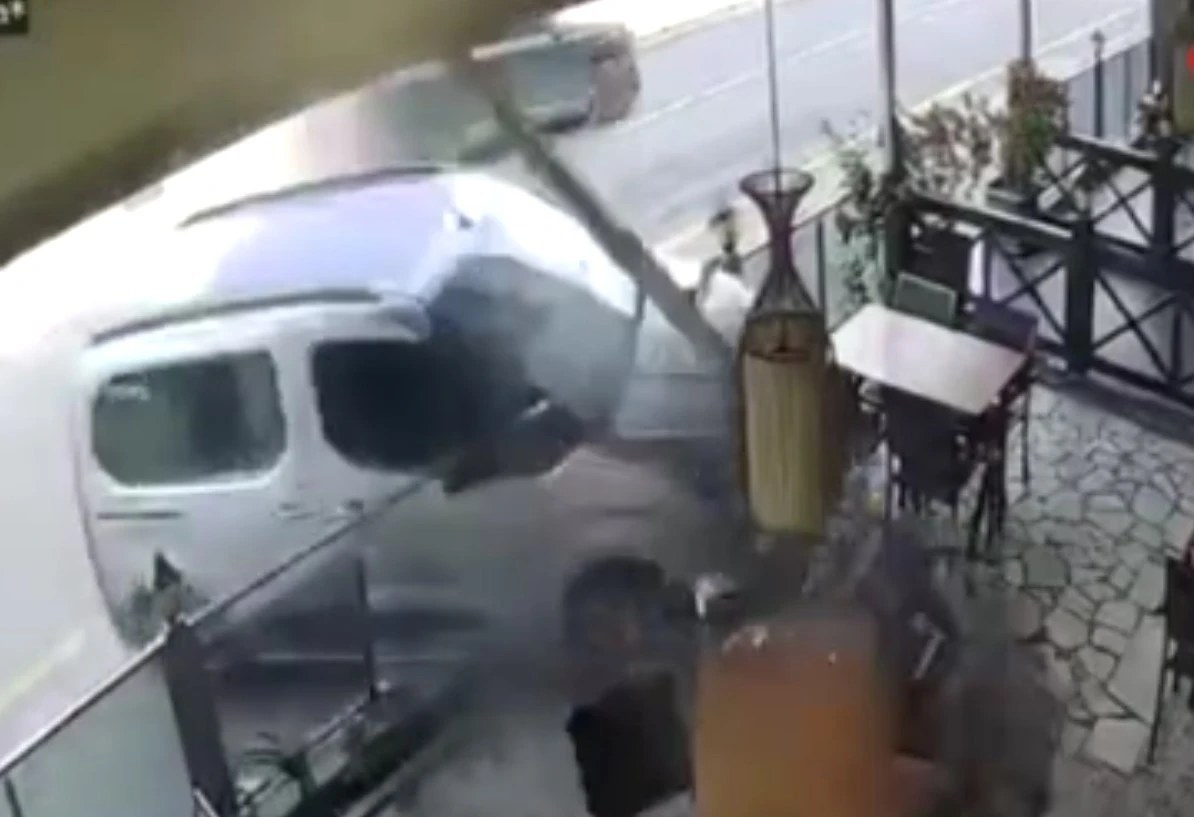İş yerinin güvenlik kamerasına yansıyan görüntülerde, ticari aracın önce başka bir araca çarpması, ardından hızla iş yerine dalması ve sürücünün olay yerinden kaçmaya çalıştığı anlar açıkça görülüyor.