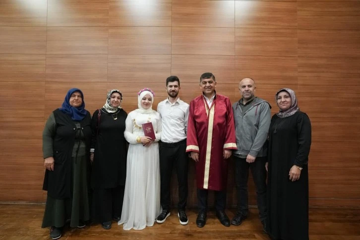 “Saygıdeğer misafirler, çok kıymetli şahitlerimiz. Bugün, sevgili Mehmet ve Zehra için bir aradayız. Sevgili Mehmet ve Zehra, evlenmek için belediyemize müracaat ettiler. Yapılan incelemeler neticesinde evlenmelerine herhangi bir mani olmadığı anlaşılmıştır. Şimdi, siz sayın misafirlerimiz ve şahitlerimizin huzurunda birbirleriyle evlenmek istediklerini beyan edecekler” dedikten sonra genç çiftin onayıyla Mehmet ile Zehra’yı karı-koca ilan eden Şehitkamil Belediye Başkanı Rıdvan Fadıloğlu, “Şu andan itibaren hayatınızdan ‘ben’ kelimesini çıkarmanızı istiyorum. Bundan sonra hayatınızda ‘biz’ var. Birbirinize karşı olan sevginiz, muhabbetiniz daim olsun. Allah; vatana, millete hayırlı evlatlar yetiştirmeyi nasip etsin. Hayırlı, uğurlu olsun” ifadelerini kullandı.