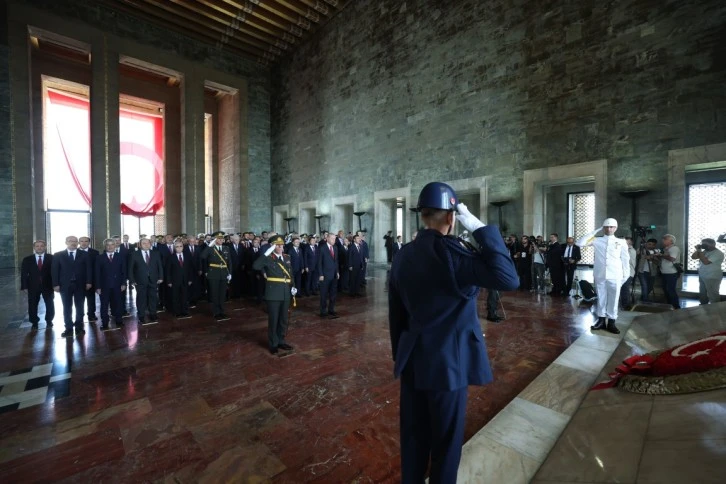 Büyük Zafer’in 102’nci yılı dolayısıyla Anıtkabir’de gerçekleştirilen tören, devlet erkanının Aslanlı Yol’da yürüyüşüyle başladı. Cumhurbaşkanı Erdoğan’ın, Atatürk’ün mozolesine ay yıldız motifli çelenk bırakmasının ardından, saygı duruşunda bulunuldu ve İstiklal Marşı okundu. Cumhurbaşkanı Erdoğan ve törende hazır bulunan devlet erkanı, daha sonra Misak-ı Milli Kulesi’ne geçti. Cumhurbaşkanı Erdoğan, burada Anıtkabir Özel Defteri’ni imzaladı.