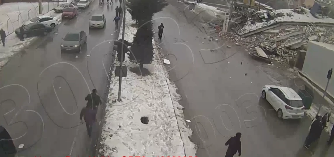 İlçenin Işıklar mevkisindeki MOBESE görüntülerinde, 13.24’teki sarsıntıyla birlikte dört katlı bir binanın park halindeki araçların üzerine yıkılması, ardından oluşan yoğun toz bulutu ve çevredeki insanların yaşadığı panik saniye saniye yer aldı.