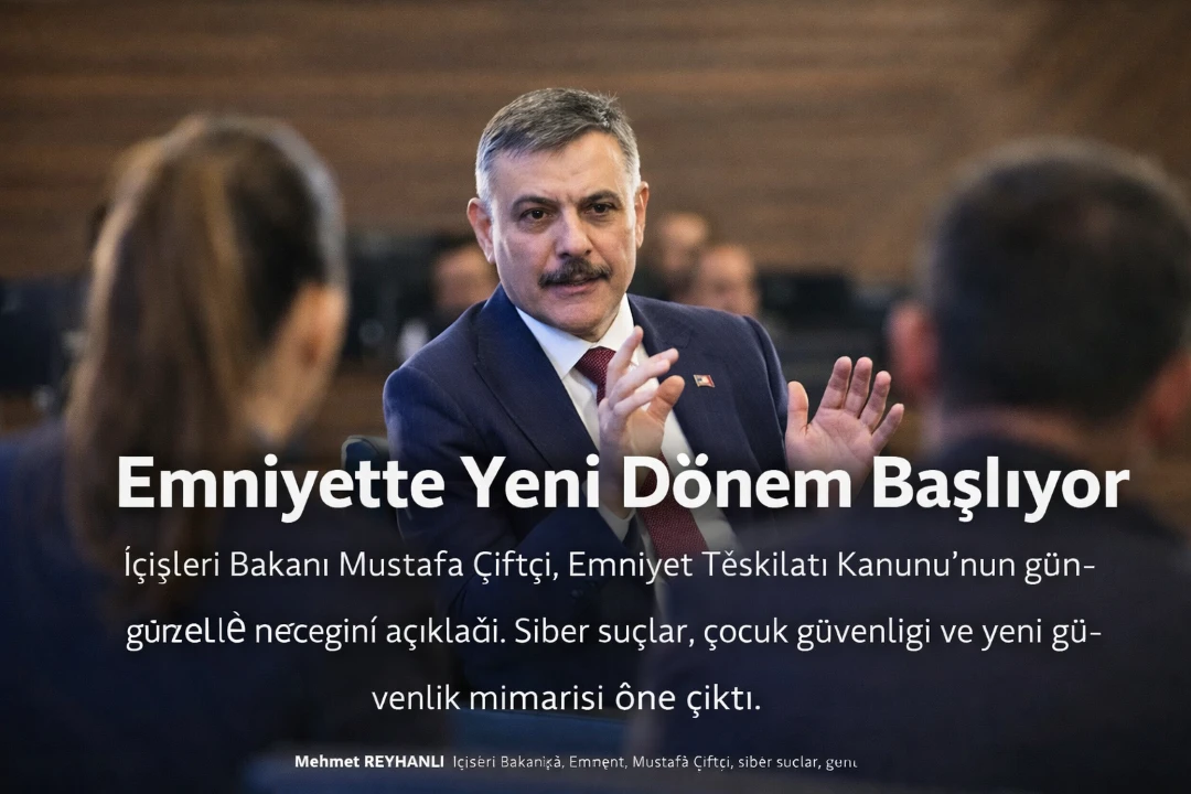 İçişleri Bakanı Mustafa Çiftçi, Emniyet Teşkilatı Kanunu’nun güncelleneceğini açıkladı. Siber suçlar, çocuk güvenliği ve yeni güvenlik mimarisi öne çıktı.