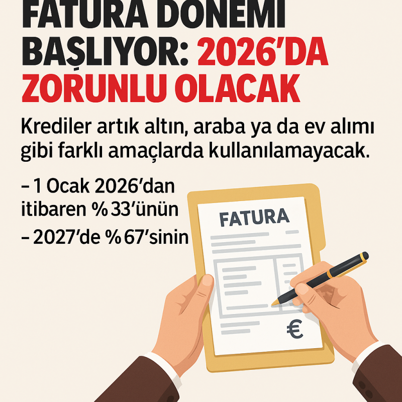 Esnaf ve sanatkârlara yönelik düşük faizli kredilerde yeni dönem başlıyor. Hazine Faiz Destekli Yatırım ve İşletme Kredisi’ni kullanmak isteyen esnaf, 1 Ocak 2026’dan itibaren aldığı kredinin en az yüzde 33’ünü, 2027’de ise en az yüzde 67’sini faturalı harcamalarla belgelendirmek zorunda olacak.