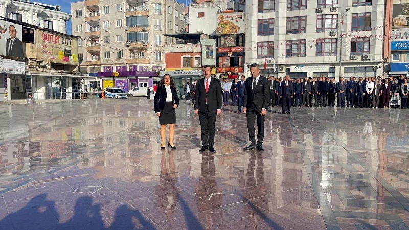 Çelenk sunumunun ardından öğretmenler, öğrenciler ve protokol üyeleri saygı duruşunda bulundu, İstiklal Marşı hep birlikte okundu. Meydandaki törenin ardından kutlamalar, kentteki bir salonda düzenlenen programla devam etti.