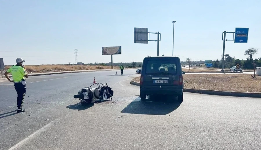 Şıh Ahmet Mahallesi’nde Mağdur (A.Z) isimli şahsın 27 plakalı motosiklet ile müşteki şüpheli (M.H) isimli şahsın kullandığı 79 plakalı otomobilin çarpışması sonucu motosiklet sürücüsü hayati tehlike arz etmeyecek şekilde yaralanmıştır.