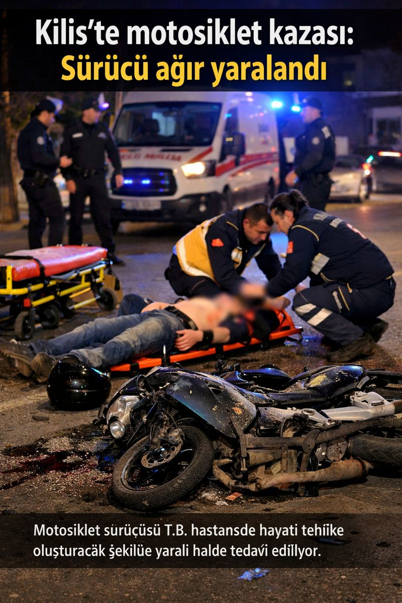Kilis’te motosikletin devrilmesi sonucu sürücü hayati tehlike oluşturacak şekilde yaralandı; hastanedeki tedavisi sürüyor.