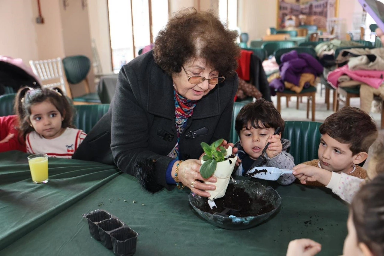 Kilis Belediyesi bünyesinde hizmet veren Emekli Kıraathanesi’nde gerçekleştirilen programda, emekli öğretmenler ile Cumhuriyet Kreşi öğrencileri çiçek ekim atölyesinde bir araya geldi.
