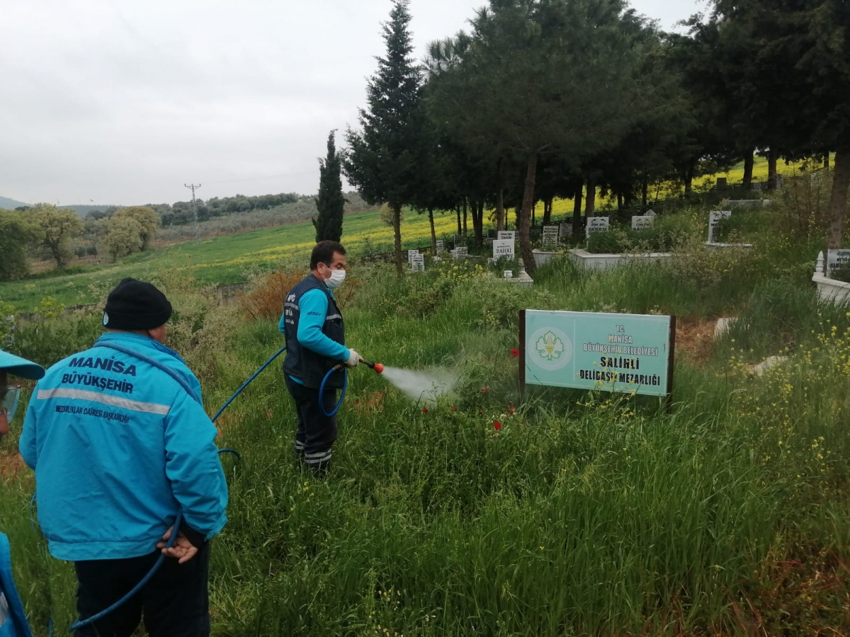 MANİSA (İGFA)- Mezarlıklar Dairesi Başkanlığı Bakım Onarım Şube Müdürlüğü ekipleri, ebedi istirahatgahlarda sürdürdüğü faaliyetlerini yoğunlaştırdı. Hava sıcaklıklarının artması ile birlikte herbisit ot ilaçlamalarına başlayan ekipler, il genelinde bulunan 2014 mezarlığın yaklaşık 1700’ünde çalışmalarını tamamladı.