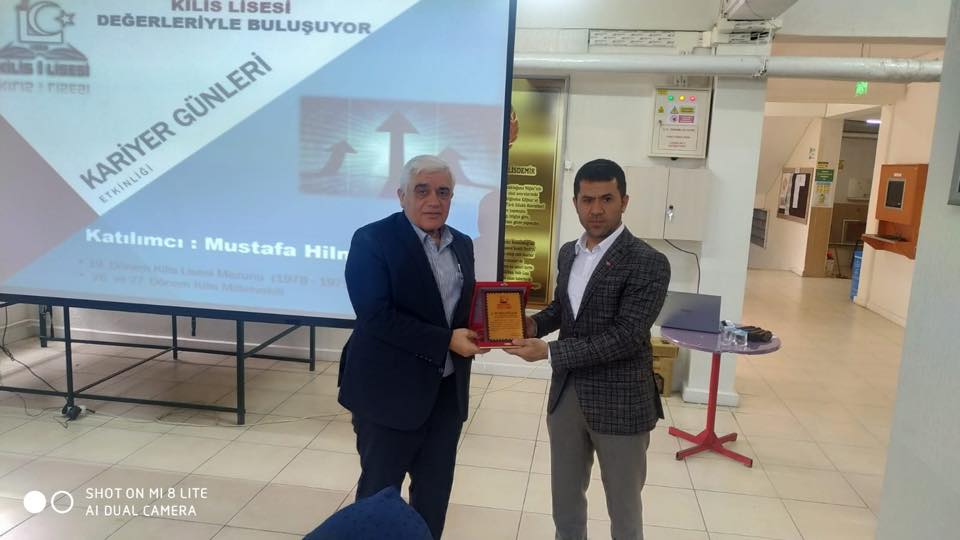Program sonunda Okul Müdürü Ali Kalli tarafından Kilis Lisesi 19. Dönem mezunu AK Parti Kilis Milletvekili M. Hilmi Dülger’e teşekkür plaketi takdim edildi.