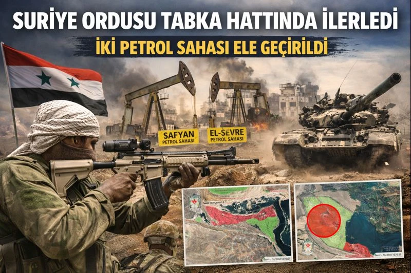 Suriye Ordusu Harekat Komutanlığı’ndan yapılan açıklamada, Tabka kırsalında yürütülen operasyonlarda Safyan Petrol Sahası, El-Sevre Petrol Sahası ve El-Resafe Kavşağı’nın tamamen kontrol altına alındığı duyuruldu.